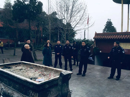 四川新闻网眉山1月22日讯(朱梦莹 文/图) 1月21日上午,洪雅县公安局、消防救援大队、洪川镇政府等部门深入慈云寺检查消防安全工作。