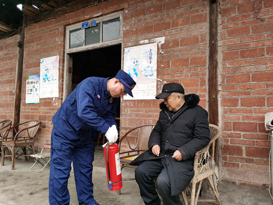 1月20日上午,洪雅县消防大队宣教人员带着消防宣传手册及灭火器,冒雨来到中山乡,在乡镇府工作人员的带领下,来到该村的孤寡老人家中,为孤寡老人们送上了消防关爱。一到老人家里,宣教人员就对老人家中的电气线路以及使用液化气情况进行了检查,结合孤寡老人的实际情况,大队宣教人员以通俗易懂的语言详细介绍了,老人如何预防火灾、如何自救逃生、怎样扑救初起火灾、对火灾中的窒息者应该怎样救治以及冬季消防安全常识等。