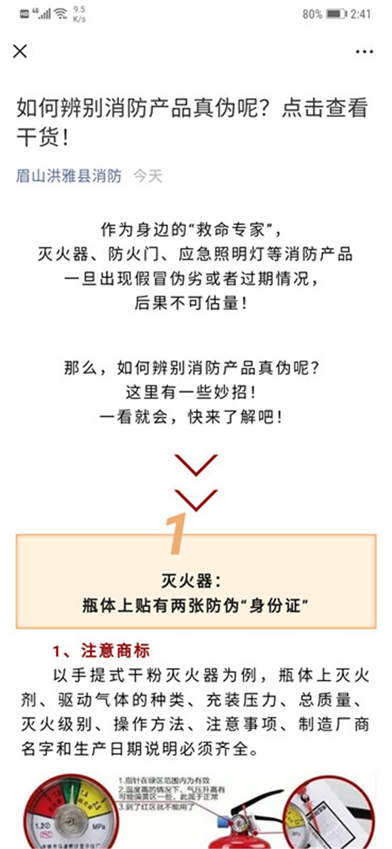 四川新闻网眉山3月16日讯(余欢 文/图)为进一步规范和整顿消防产品市场秩序,坚决打击假冒伪劣消防产品,切实从源头上提升社会火灾防控能力,营造良好的消防安全环境。3月13日上午,洪雅消防救援大队借助微信公众号平台,向辖区社会单位、广大群众发送消防产品相关知识。