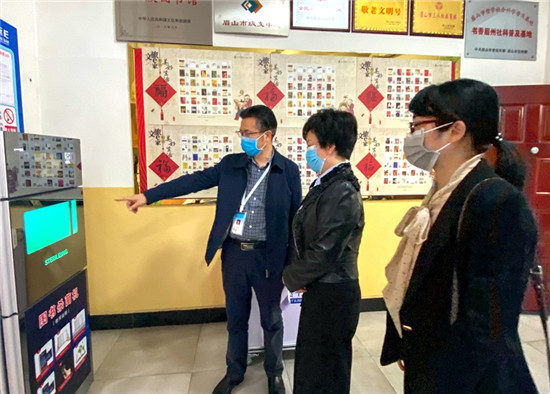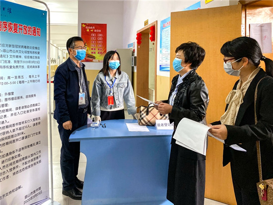 四川新闻网眉山3月24日讯 (吕伟利 赵学军 文/图)3月23日下午,眉山市文广旅局副局长尹鸿率该局公共服务科相关同志到市图书馆检查指导有序恢复开馆和疫情防控工作。