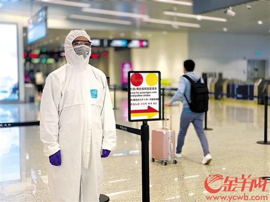 白云机场简化入境旅客分类标识,目前实行“红黄”二色分流 羊城晚报全媒体记者 唐珩 摄