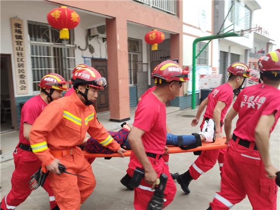 灾情就是命令,地震发生后,县消防救援大队接到调度命令后,迅速启动地震应急预案响应机制,出动2车10人奔赴现场集结待命。指挥部负责人员到达张场镇后,前方指挥部迅速召开会议,安排部署现场抢险救援工作。公安机关对受灾区域主要道路进行管制,确保救灾车辆顺利通行。电信公司保障前线通讯畅通。电力、燃气部门切断搜救区域供电供气,防止发生二次灾害事故。医护人员迅速到达现场,准备对受伤人员进行及时救治。县消防救援大队作战指挥员立即组织政府专职消防队、飞虎救援队、乡镇民兵成立搜救组和灭火组,搜救组立即对灾害发生重点区域进行搜救。5分钟后,搜救组从建筑内救出1名被困群众,医疗人员立即进行急救包扎处理。搜救组在搜救过程中发现一建筑着火,立即向指挥部报告。现场指挥部派出灭火组人员展开灭火作战,几分钟后,现场火势被扑灭,无复燃可能,灭火救援战斗结束。