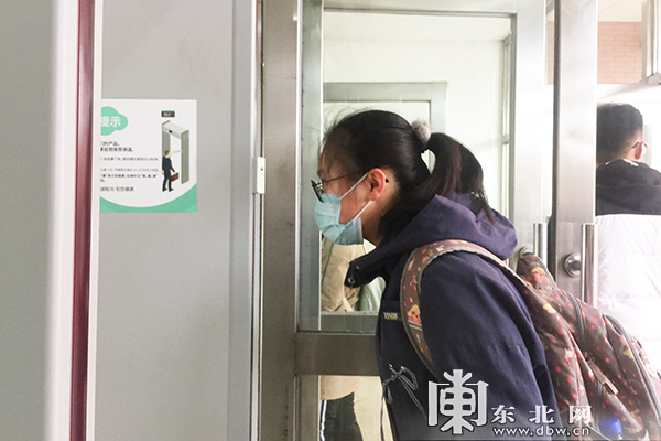 在哈尔滨市第122中学在高三年级教学楼进门处,两台“测温门”格外醒目。据学校工作人员介绍,这两台“测温”为门框式红外体温监测仪,每位师生进入教学楼前都要通过测温门进行体温检测,它能瞬间捕捉人体体温并实时记录,而且无需接触。记者在现场看到,学生们用额头对准红外温度传感器,保持三秒左右便可听到“嘀”的一声,测温门上方便显示出被测者体温,每名学生只需几秒便可通过,节省了很多测量时间。