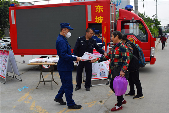 四川新闻网眉山4月11日讯(佘进 文/图) 为做好辖区火灾防控工作,进一步加强安全生宣传力度,切实提高辖区群众家庭消防安全意识。4月10日上午,东坡消防万胜专职队会同三苏镇政府安办工作人员,在三苏镇辖区街道开展消防宣传。