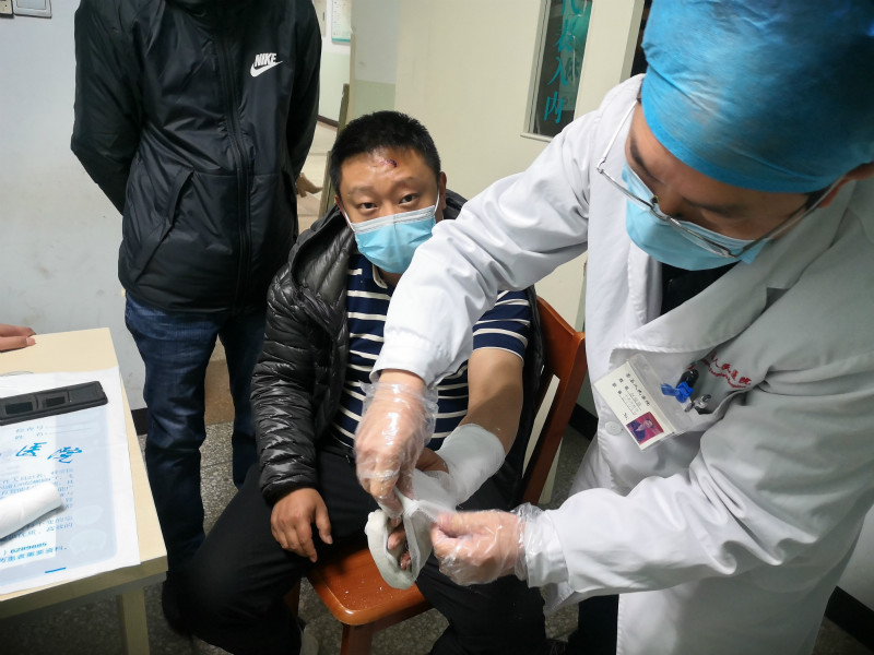 在纳溪区医院,医生要求三人做全面检查,但他们强忍伤痛,仅做了简单治疗,就与支援的战友一道将涂某押解回荣县。经荣县人民医院检查,代郑波面部擦伤,额部缝针,左手骨折,阙尧、朱能多处软组织挫伤,嫌疑人涂某未受伤。(图片由荣县公安局提供)