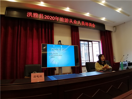 当下,越来越多的国际友人走进七里坪,提升旅游从业人员的英语能力已经成为洪雅旅游发展当务之急。为此县文广旅局特别举办了以旅游职业英语为主的培训会议,邀请眉山电子职业技术学校四位专业讲师进行授课,以七里坪温泉酒店为代表的60余名旅游从业人员参训,受到学员广泛好评。
