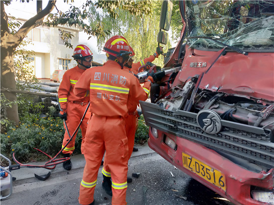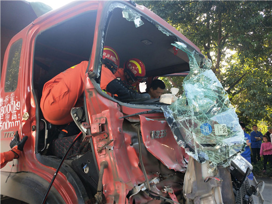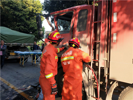 四川新闻网眉山4月27日讯 4月25日17时42分,青神县消防救援大队营区内响起一阵急促的警铃声!“喂,是119吗?这里有两辆货车追尾了,有个司机被卡在驾驶室不能动弹,你们快来看看吧!”经接警员询问,追尾地点发生在青神县南城镇大兴村段公路,有1人被困。接警后,大队立即出动1车6人赶赴现场实施救援。