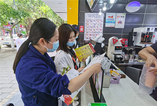 四川新闻网眉山4月28日讯(余欢 文/图)为进一步加强辖区店面商铺消防安全工作,提高沿街商铺从业人员消防安全素质。4月28日,洪雅县消防救援大队通深入辖区繁华地段,向沿街商铺业主及从业人员发放消防宣传资料,普及消防常识,切实教育沿街店铺业主做好消防安全工作,从源头上坚决遏止火灾事故发生。