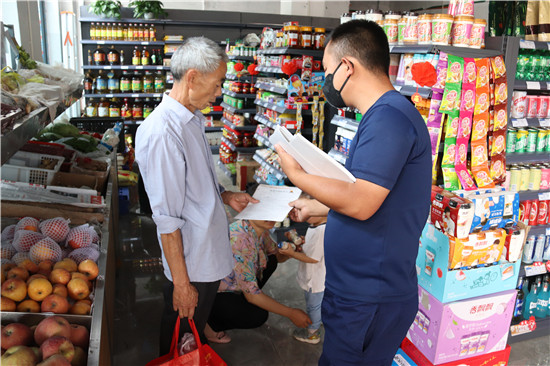 活动中,宣传人员走进沿街商铺一边向店主发放制作精美、图文并茂的消防宣传资料,一边采用通俗易懂的语言讲解消防安全常识,并嘱咐沿街商户都要配备灭火器材,经营生产场所内不要住人,不要在公共走道停放电动车或在室内对电动车进行充电,不要堵塞消防通道,要时刻保持消防通道畅通,日常生活中要注意用火用电用气安全,遇到火灾要保持冷静正确拨打119电话,发生火灾时要正确逃生等。