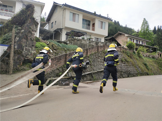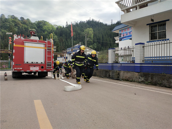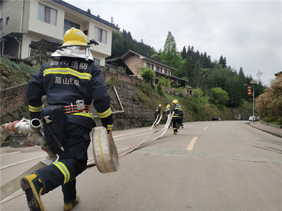 四川新闻网眉山5月26日讯(余欢 文/图)为提升专职消防队队员的灭火救援能力,增强战斗力,确保关键时刻“拉得出,冲得上,打得赢”。5月26日,洪雅县消防救援大队瓦屋山政府专职队组织全体队员开展枪炮协同灭火操训练。