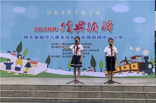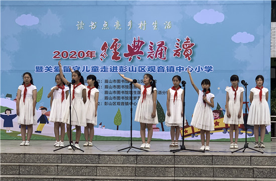 四川新闻网眉山6月16日讯 书声琅琅、笑声阵阵。6月15日,由眉山市图书馆、彭山区图书馆主办,市图书馆三个分馆联合协办的“读书点亮乡村生活”2020年经典诵读暨关爱留守儿童活动在彭山区观音镇中心小学举行。