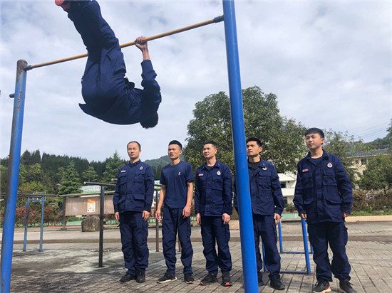 四川新闻网眉山6月22日讯(张金虎 石艳芳 文/图)为进一步强化专职队员体能素质和灭火救援能力,提高队员整体战斗力,日前,洪雅县瓦屋山镇政府专职消防队员开展了体能训练。