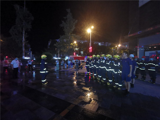 四川新闻网眉山6月23日讯(余欢 田崇夏 文/图)为了全面提升队伍扑救商场火灾能力,切实增强灭火救援战斗力,在最短的时间内充分发挥安全保障作用,最大限度的减小事故损失。6月19日晚上9点,洪雅县消防救援大队组织封河路消防救援站、柳江镇政府专职消防队、伊盛百货商场微型消防站和中石油微信消防站在辖区伊盛百货商场,进行跨区域、跨行业火灾事故综合应急救援演练。此次演练共调集4辆消防车、20名消防指战员以及12名微型消防站队员参加。为锤炼队伍的应急处置能力,采用随机拉动辖区两个中队,根据现场情况随机设置演练现场,不断变换新问题,考验指挥员和队员应急处置能力。演习现场设置“火场指挥部”,大队长刘振为指挥员,下设警戒组、作战组、医疗组、宣传报道组等,对参演的力量和具体流程做了明确规划。