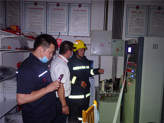 演练假定情景:假设伊盛百货商场二楼某线路短路不慎发生火灾。商场保安人员发现“火灾”后,立即拨打“119”报警,并迅速启动商场应急预案,利用消防应急广播通知顾客和员工立即向室外安全地带有序疏散逃生,商场微型消防站和中石油微信消防站队员第一时间到场处置,但火势太大,已无法控制,火势迅速向商场四周的卖场燃烧蔓延、顿时浓烟滚滚。