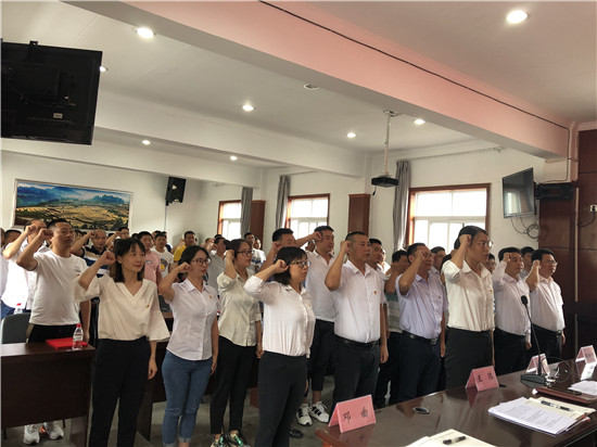 大会在庄严的《国歌》中拉开序幕。新发展的预备党员和新转正党员进行入党宣誓,全体党员重温入党誓词,“我志愿加入中国共产党,拥护党的纲领,遵守党的章程.......”誓言铿锵有力,表达了对党的无限忠诚。