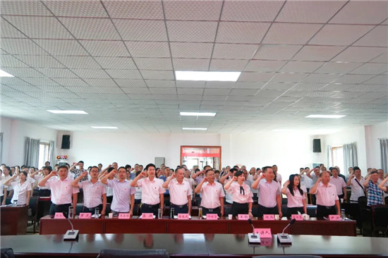 会议在庄严的国歌声中拉开帷幕。“我志愿加入中国共产党,拥护党的纲领,遵守党的章程……”在庄严的党旗下,在领誓人的带领下,党员干部们举起右拳,面向党旗,重温入党誓词,表达”不忘初心、牢记使命“的坚定政治信念,以新时代农业农村工作要求为指引,奋勇争先、担当作为。