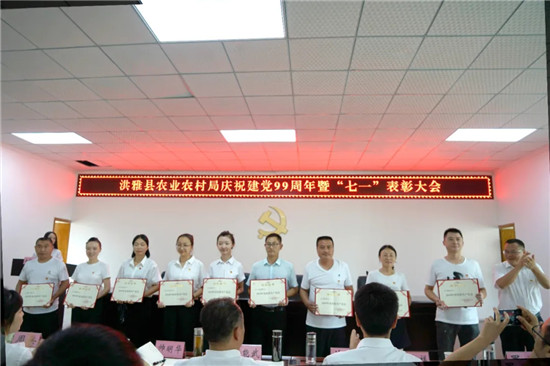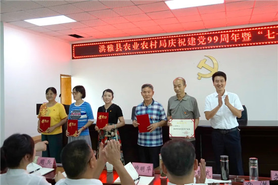 四川新闻网眉山7月3日讯(姜佳岑 周宇琴 文/图)为庆祝中国共产党成立99周年,扎实开展纪念活动,弘扬先进、激励后进,不断激发党员队伍战斗力。近日,洪雅县农业农村局举行庆祝建党99周年暨“七一”表彰大会。机关支部全体党员、退休支部支部委员、川农高科党支部、包保区域党支部代表以及非党干部职工等160余人参加了活动。