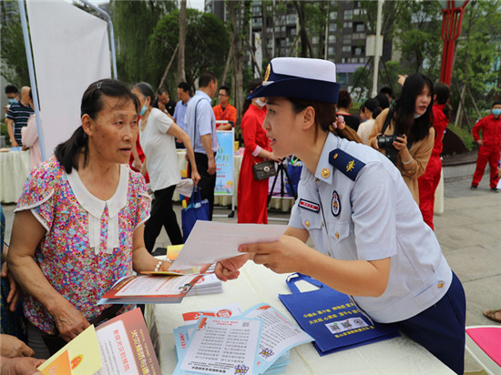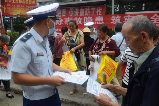 (四)安全生产宣传教育“进农村”。在6月“安全生产月”活动中,大队积极与26个乡镇街道办事处对接,开展消防宣传使者进农村活动,消防宣传志愿者主动向商户以及过往群众发放宣传单,大力宣传消防知识,并现场向广大群众讲解正确拨打报警电话、家庭防火常识、初起火灾扑救、弱势群体防火常识等贴近生活的消防安全知识,为群众解答日常防灭火问题。消防宣传志愿者在发放宣传资料的同时也不忘提醒群众,要时时刻刻注意安全用火用电,出门时不要忘记关闭电源、燃气等开关,并结合近期全国各地发生的火灾事故案例,警醒广大民众切实做好消防安全,利人利己,深刻吸取经验教训,不断加强消防知识的学习和应用,有备无患。“关注消防安全不仅可以给自己带来知识,也能把学到的知识传授给身边的亲朋好友,是一件很愉快的事情!”辖区群众张大爷高兴地说道。同时,志愿者每到一处,都耐心解答群众提出的消防安全方面的问题,通过相互交流,让群众在娱乐中掌握了更多的消防安全知识。