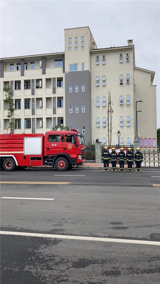 高考期间,彭山消防救援大队分别派出多辆消防车和消防员在三个考点现场进行执勤,全程守护高考期间考点的消防安全。