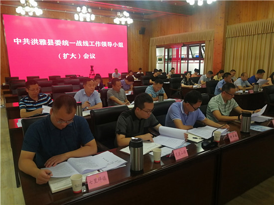 会议传达学习了加强和改进统一战线工作的重要思想、新修订的《四川省宗教事务条例》,省委、市委关于统一战线工作和民族宗教工作相关会议精神。会议审议了《洪雅县县级党员领导与统战代表人士联谊交友工作方案(审议稿)》等4个文件。洪川镇、柳江镇、洪雅经开区、县教体局分别围绕基层统战和“两乱”治理、园区统战服务企业、做好党外知识分子工作在会上发言。县委统一战线工作领导小组、县委侨务和港澳台事务工作领导小组、县委民族宗教工作领导小组全体成员及各镇党委书记参加会议。