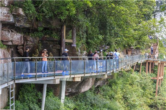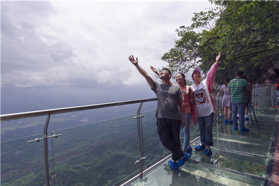 游客体验玉屏山玻璃栈道