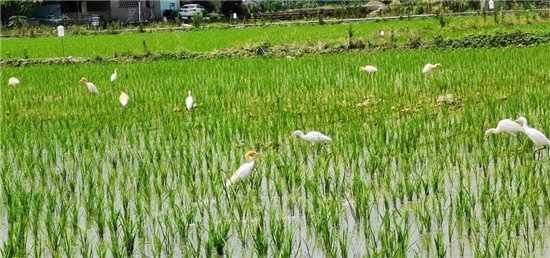 近日,在该县好味稻种植专业合作社的320亩稻田内,一群鸭子穿梭其间吃虫、踩草,一幅“稻鸭共生”的和谐画面呈现在记者眼前。鸭子作为稻田的特殊“管理员”,精心“管护”着秧苗。