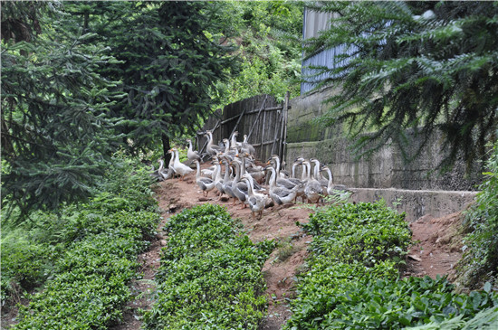 近日,记者探访该县屏羌有机茶基地,海拔近 900米的山区,随着微风浮动,茶叶的清香伴着清新的空气而来,沁人心脾。近300亩的茶园里,一群胖鹅在其间捕食,不远处还有着一群羊。鹅吃害虫、羊吃杂草之余,还能给茶地“施肥”。“我们坚决不施化肥,为了让土壤肥沃,都是使用的畜禽粪便。最早是用蚯蚓的粪便及牛屎,现在用的是鹅、羊的粪便。”该基地相关负责人宋师傅介绍。