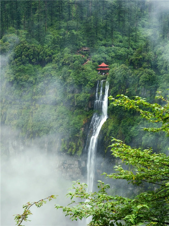 雨后的瓦屋山,那匍匐的云霭、翠绿森林遮盖的群山、大大小小的瀑布、蔚蓝色的湖面和金色的山石,构成了一幅幅壮观、秀丽的画面。