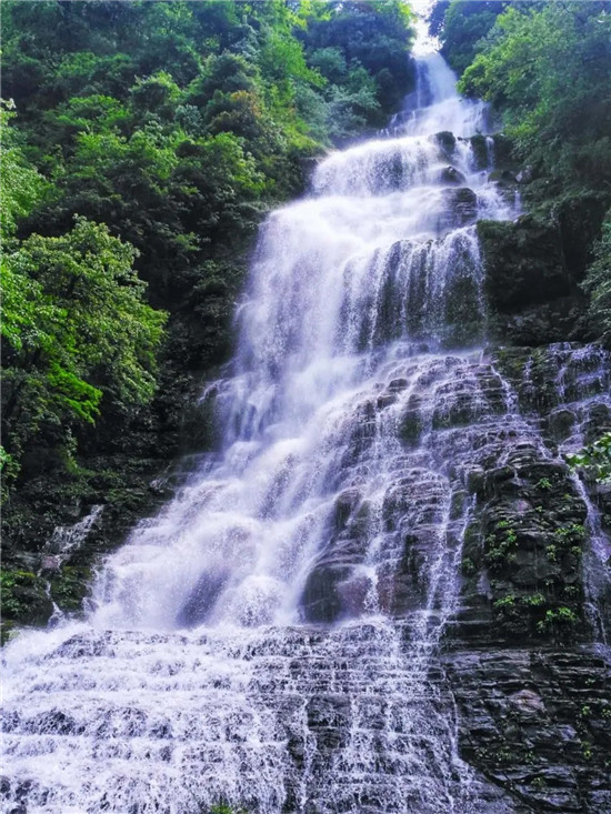 “瀑布半天上,飞响落人间。”兰溪瀑布,三星瀑布,大法瀑布等,凭栏眺望,但见巨瀑似布如帛,汹涌澎湃,气势磅礴。溅起的水珠闪银亮玉,极为壮观。山下的小溪、小沟则安静流淌,寂静欢喜。