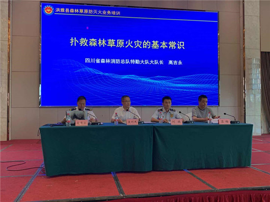 四川新闻网消息(朱梦莹 文/图)为深入推进森林火灾扑救指挥与安全专项整治,进一步提升全县森林火灾处置能力, 8月27日,洪雅县消防救援大队组织召开全县森林防灭火能力提升培训会。县常务副县长袁利民、四川森林消防总队特勤大队大队长高吉永、县应急管理局副局长苏杨、县消防救援大队大队长刘振,县森林防灭火专项整治工作成员单位分管领导、各镇森林防灭火专项整治工作的分管领导、各镇林业站站长等70余人参加会议。