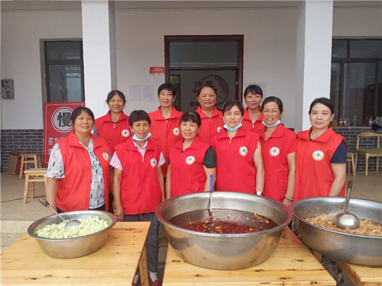 联丰村老年协会成员穿上“红马甲”,为受灾群众做饭