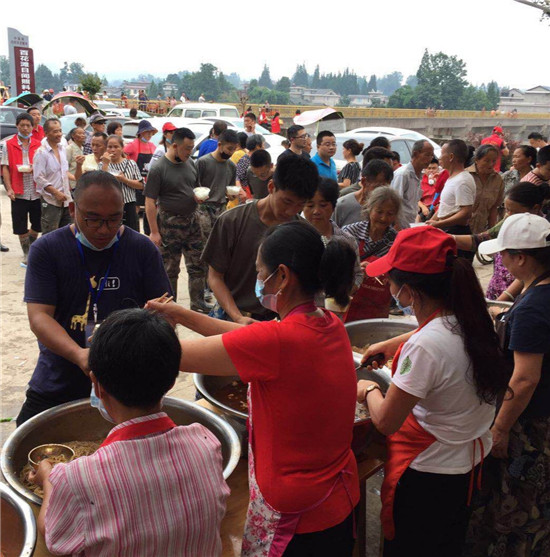 受灾群众吃到热腾腾的饭菜