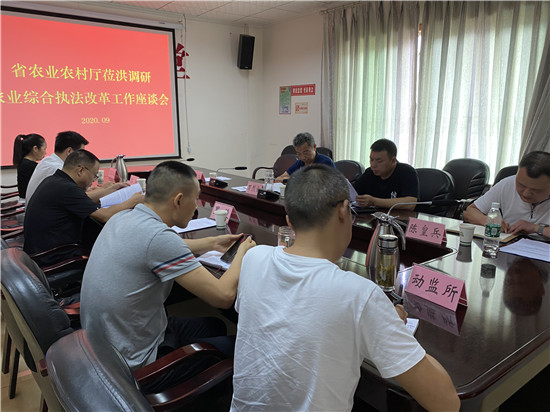 前往稻香湾开展乡村振兴建设示范点调研后,随即在县农业农村局召开农业综合执法改革座谈会。