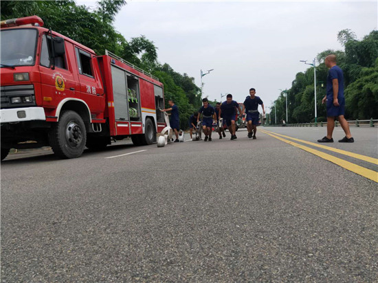 四川新闻网消息(舒勇 文/图)9月8日下午,青神专职队组织开展 220米初战快速出水控火操训练。