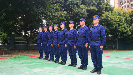 新入职政府专职消防员集训队严格按照队列条令和集训方案的要求,进行了军姿、立正、稍息、敬礼、停止间转法、齐步、跑步等基本内容的训练。全体新训队员均能做到动作统一,严以律己,认真对待和完成每一个动作。内务整理也是入职教育训练的重要组成部分,集训队在内务设置方面制定了统一的实施细则,按照“既方便生活又利于工作”的要求对内务进行规范,营造出整洁统一、简单舒适的生活环境。