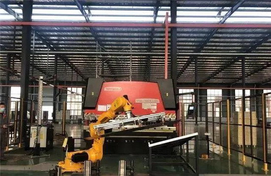 在四川尖瑞科技有限公司生产车间内,全自动折弯机、数控转塔冲正在对售货机外壳进行切割和造型,数名工人正对材料进行打磨,数台成品机下线准备运往省内外各地,整个车间自动化水平和生产速度大幅提升。