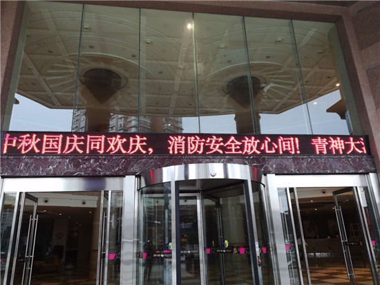 四川新闻网消息(鲁红燕 文/图)为切实做好国庆节期间火灾防控宣传工作,营造浓厚的消防安全氛围,提升全民消防安全素质,9月28日,青神消防救援大队积极发动社会力量,借助辖区单位LED显示屏滚动播放消防安全宣传标语。