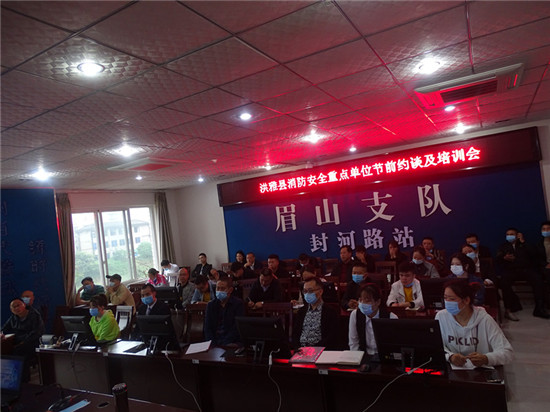 四川新闻网消息(孙阳容 文/图)为深刻吸取近期火灾事故教训,切实做好“中秋”“国庆”期间的消防安全工作,全力确保全县火灾形势稳定。9月28日,洪雅县消防救援大队组织全县消防安全重点单位负责人召开节前约谈及消防安全知识培训会。