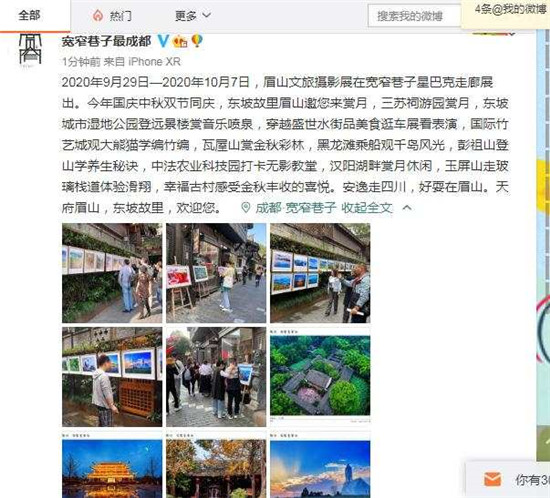 四川新闻网消息(吕伟利)花好月圆中秋日,人和家兴国庆节,在国庆中秋举国同庆之时,以“安逸走四川 好耍在眉山”为主题的眉山文旅摄影展在成都宽窄巷子星巴克走廊成功开展。本次摄影展是东坡故里——眉山在成都向省内外游客发出的邀约,影展从9月29日开始展出,一直延续到10月7日结束。