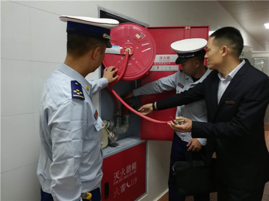 在检查过程中,大队执法人员利用宾馆的消防设施、器材深入浅出地为消防员讲解了消防设施的组成、运行原理、检查方法和常见问题,同时利用现场测试的方式为消防员存在的疑点、难点问题进行详细解答,最后,就查看场所日常工作开展记录、填写监督检查记录、责令改正通知书进行了指导。