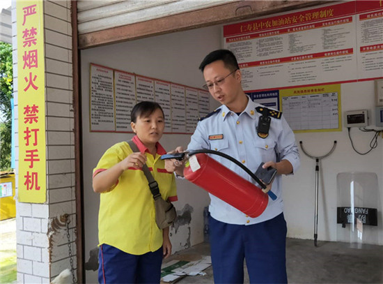 四川新闻网消息(方龙全 文/图)为切实做好中秋、国庆节“双节”期间辖区消防安全工作,坚决预防和遏制火灾事故的发生, 9月29日,仁寿消防救援大队深入辖区商业综合体、加油站等场所开展消防安全检查,进一步强化社会消防安全管理。