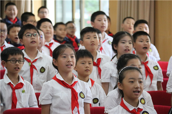 青神县教体局机关党委书记刘琳寄语少先队员,刻苦学习知识,坚定理想信念,磨练坚强意志,锻炼强健体魄,为实现中华民族伟大复兴的中国梦时刻准备着。