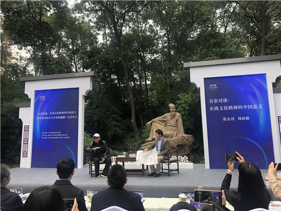 活动中,来自中国苏轼研究协会的两位专家就“东坡文化精神的中国意义”展开对谈,让更多的人了解弘扬东坡精神,传播东坡文化的深刻内涵和意义。现场,出版单位还向三苏祠博物馆、三苏文化研究院、眉山驻军部队、苏祠中学等单位赠送四川历史名人图书。
