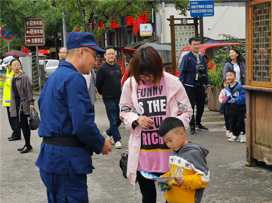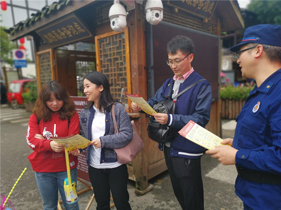 四川新闻网消息(张金虎 文/图)为增强景区游客和商家住户的消防安全防范意识,预防和减少火灾事故的发生,10月19日,洪雅县消防救援大队宣教人员深入柳江景区走街串巷开展消防安全宣传活动。