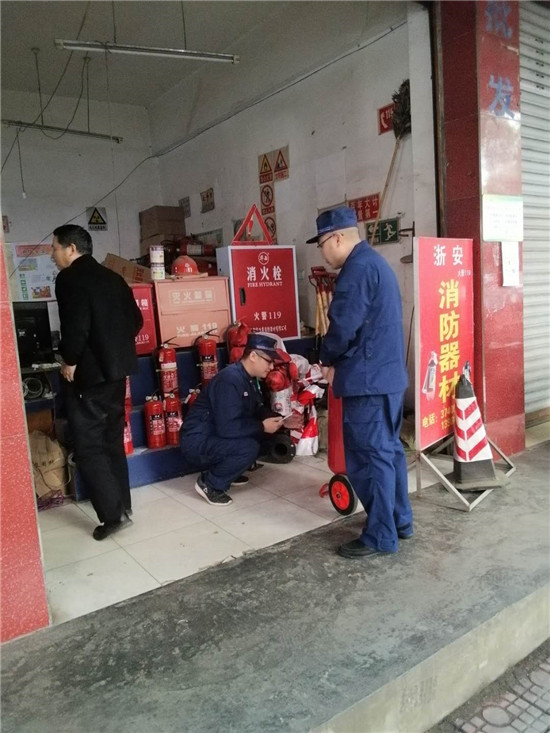 检查中,大队、市场监管局人员深入辖区各经销门店仔细检查看了各类消防产品是否符合行业标准,同时也对产品检验报告、型式认可证书、合格证等相关材料进行了查看;详细询问了各消防产品经销商关于消防产品的进货渠道等情况。并对场内的消防应急照明灯、灭火器、消防水带等消防产品进行现场抽样检查。同时提醒各经销商一定要重视消防产品质量,要从正规渠道购进消防产品。