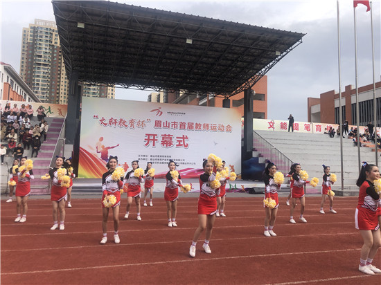 10月31日下午,以“扬体育精神,展教师风采”为主题的眉山市首届教师运动会开幕式在苏洵中学成功举行。来自全市31个代表团运动员代表、裁判员代表、市教体局机关啦啦队参加了此次开幕式。