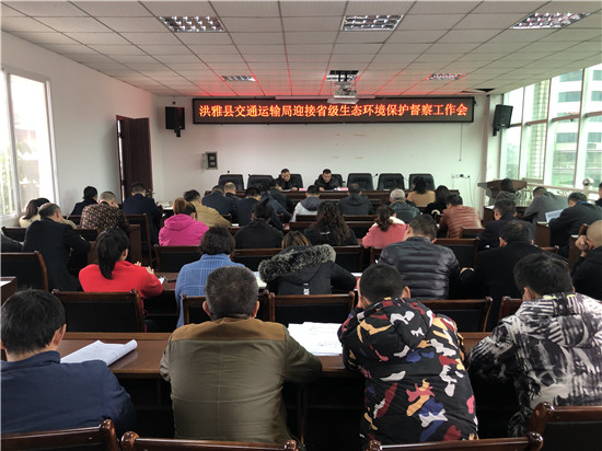 四川新闻网消息(谢艳 文/图)11月5日下午,洪雅县交通运输局党委书记、局长杜国勋同志组织局党委班子成员、局属单位、局机关各股室负责人以及客货运输企业、维修企业、砂石厂、交通在建施工单位负责人80余人,召开全县迎接省级生态环境保护督察工作会,宣传贯彻11月2日县上迎检工作会议精神。为落实环境保护“党政同责、一岗双责”、“管行业管环保、管生产管环保”要求,针对重点排查行业和领域,县局制定一系列举措,确保顺利迎接省级生态环境保护督察工作。