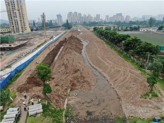 “工程进入中心城区后,因护城河两旁商铺众多、人流量也大,对施工造成一定影响。”据现场施工的工作人员介绍,目前,施工作业点已由瓦屋山大道延伸到天池南街,为尽可能少的影响市民,工地上很多作业都采用人工和小型机械协作来完成,“为了有效推进工程进度,我们充分利用一切有利天气和施工时间段来施工。”