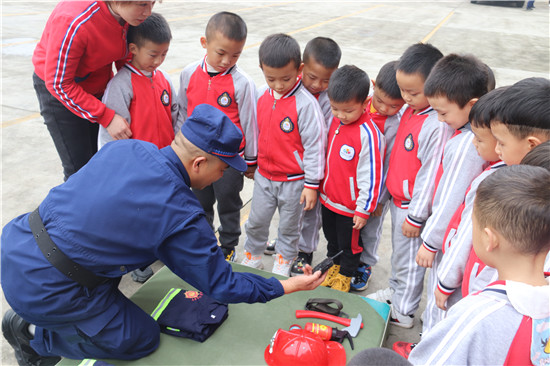神秘的消防车、力大无比的消防器材、“齐刷刷”的消防服……一切的一切都是足以撩动每个孩子的心。在消防员叔叔的带领下,“红孩儿”们乖乖地跟着逐个参观体验,面对一辆辆硕大的红色战车和一件件新奇的消防器材装备,孩子们不时地向消防员叔叔提出问题,表现出浓厚的兴趣,对于参观学习家长的提问,消防员对参观者提出的问题进行了现场回答,并着重对隔热服、灭火器、消防水带、液压扩张器等消防装备器材的功能和用途进行了详细地讲解。在试穿灭火战斗服和抢险救援服的时候,孩子们个个跃跃欲试,争先上前体验穿着灭火战斗服和抢险救援服,变身小小消防员,摆出各种造型拍照留念。最后,消防员叔叔还为孩子们和老师们现场演示了液压扩张器的神奇之处,并邀请了老师进行了灭火演练。孩子们兴奋的不得了,直呼“消防员叔叔,我爱你……”