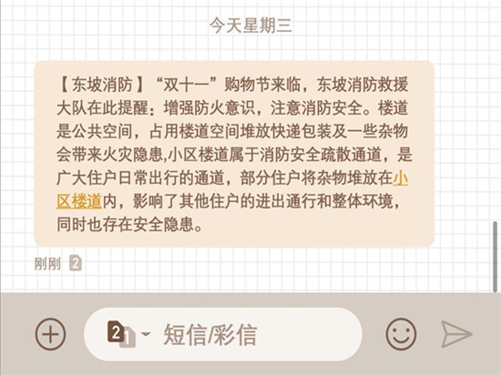 四川新闻网消息 随着一年一度的“双11”来临,网上购物火热,线上线下促销活动频繁,各大物流快递公司都迎来了业务的“井喷期”,而且快递仓库货物堆积如山消防安全成为了最容易忽视的地方,稍有不慎威胁到的不仅是财产损失,甚至还有生命安全。为切实提高大家消防安全意识,保障安全生产和寄递渠道安全畅通,东坡区消防救援大队利用短信、微信平台提醒广大市民及仓储物流公司消防安全。
